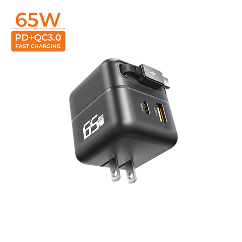 65W गन पोर्टेबल डुअल-पोर्ट यूएसबी सी दीवार चार्जर नई प्रवृत्ति रिट्रेटेबल केबल फास्ट चार्जर के साथ नया ट्रेंड रिट्रेटेबल केबल फास्ट चार्जर